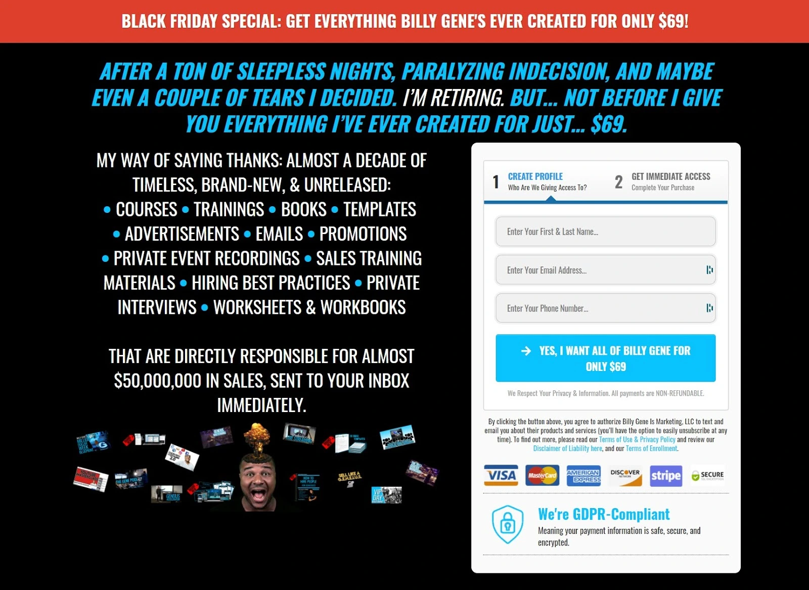 But Brian sells a $20,000 mastermind with a short list of bullets. He also makes it impossible to buy without filling out an application.