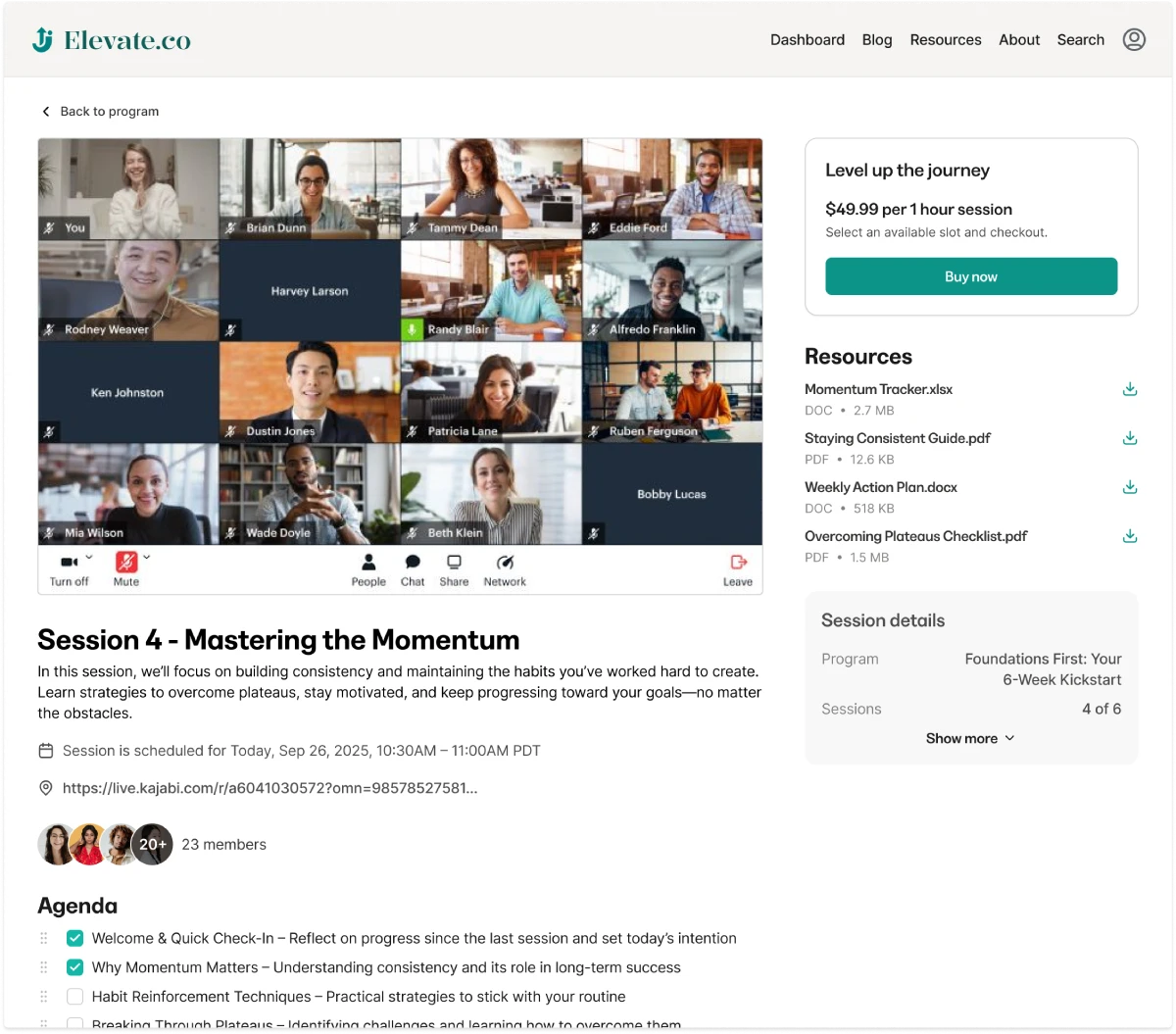 Run polished coaching experiences, seamlessly upsell new offers, and give clients flexible ways to book. All from one integrated platform.