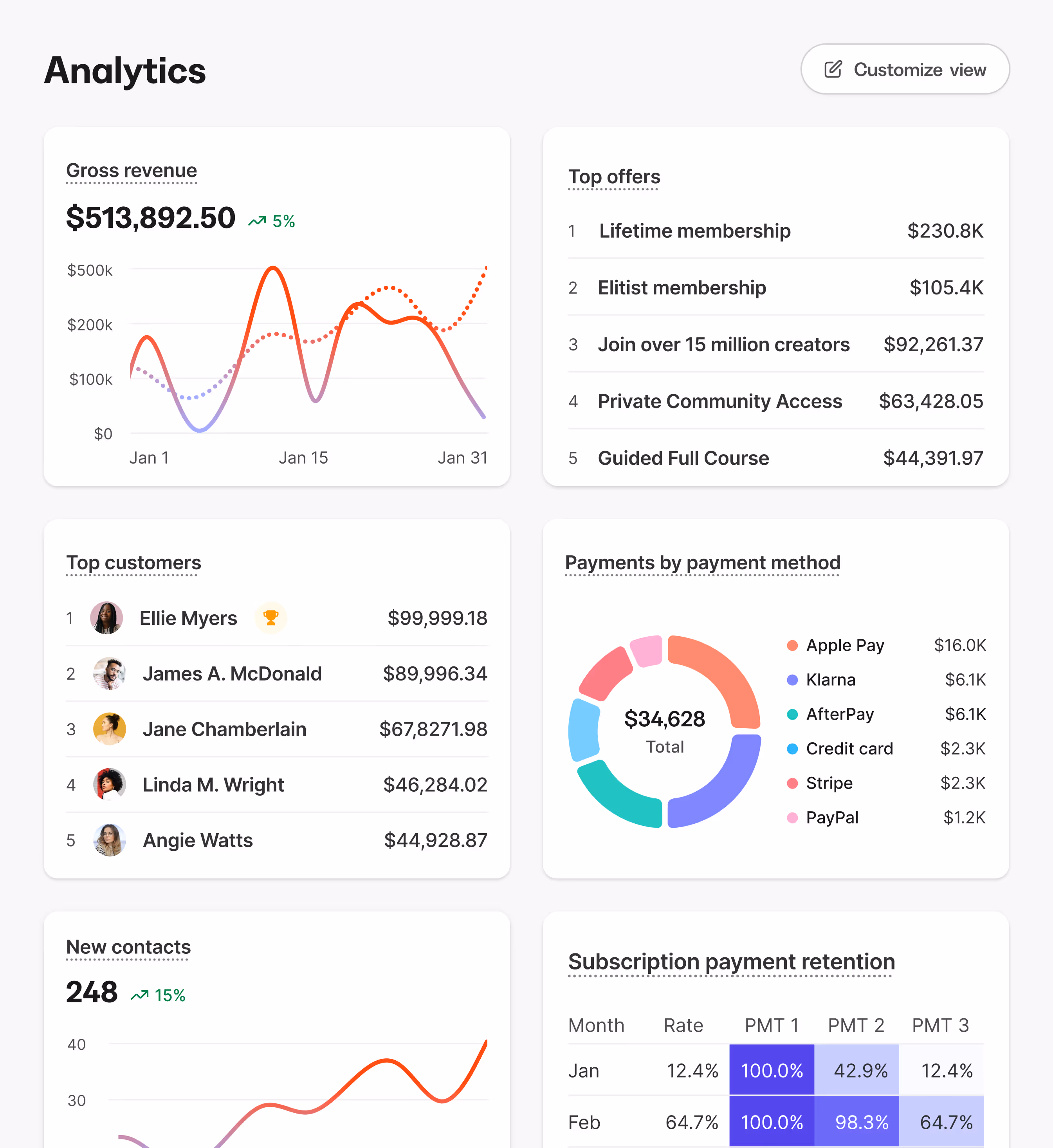 See what’s working, double down on revenue drivers, and act with confidence using clear, insights built right into Kajabi.